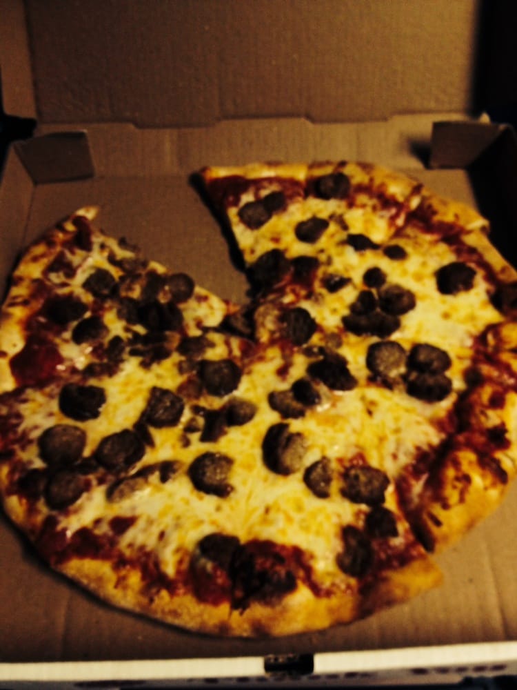 With meat sauce (rogola's own sauce). Choose a side: Cole-Slaw and Fresh Pasta, Salad, Soup, Vegetable