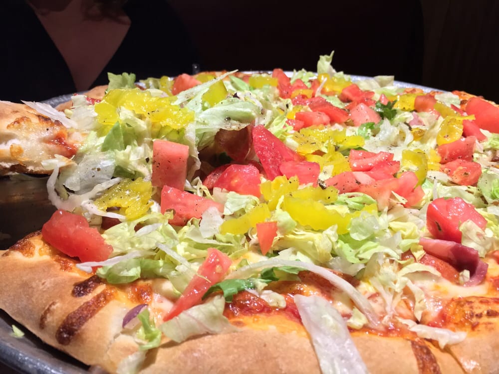 Old fashioned pepperoni, ham, onion, green pepper, shredded lettuce, chopped tomatoes, banana peppersand a gentle touch of Italian dressing